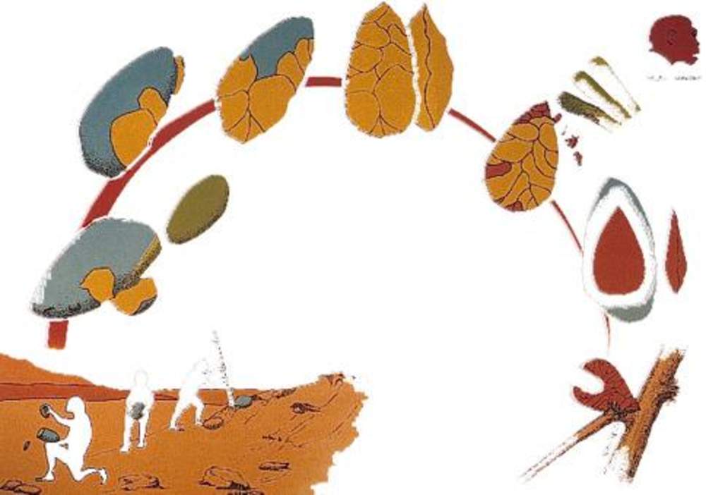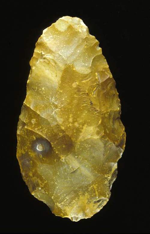 Lorsque les premiers hommes pénètrent à l'ouest de la Région parisienne, ils apportent avec eux tous leurs savoir-faire et particulièrement leur technique de la taille de la pierre, fabriquant ainsi des outils élaborés comme le biface. Ces outils, le plus souvent en silex, sont souvent les seules traces du passage de ces groupes de chasseurs.