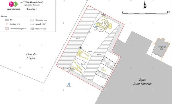 En janvier 2016, un sondage géotechnique préalable à un projet d’assainissement, porté par la ville d’Antony et supervisé par un architecte du patrimoine, avait permis de mettre au jour une tombe maçonnée contre l’église Saint-Saturnin.