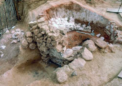 Lors de sa découverte, la charge de chaux comblait encore l’ensemble du four indiquant qu’il avait été abandonné pendant la cuisson. Les archéologues supposent qu’une forte pluie serait à l’origine de l’arrêt brutal du travail. L’orage aurait éteint le feu et transformé la chaux en masse pâteuse, provoquant alors l’obstruction du gueulard, avant de se solidifier.