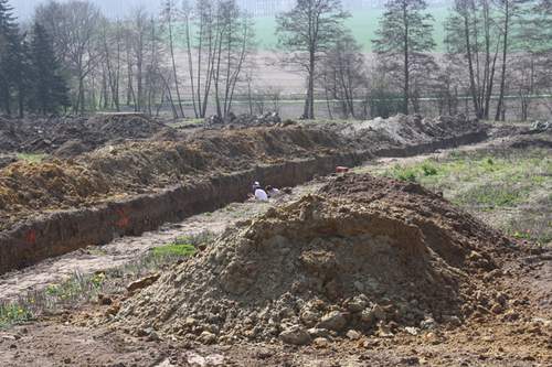 Le plan de répartition des objets a permis d’estimer l’extension de l’occupation à environ 7 500 m². Plusieurs secteurs de quelques mètres carrés ont été fouillés de façon à obtenir des informations plus précises sur son organisation interne. Ce sont ainsi huit sondages de 4 m² chacun qui ont été ouverts, sur une trentaine de centimètres de profondeur.