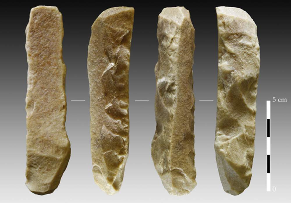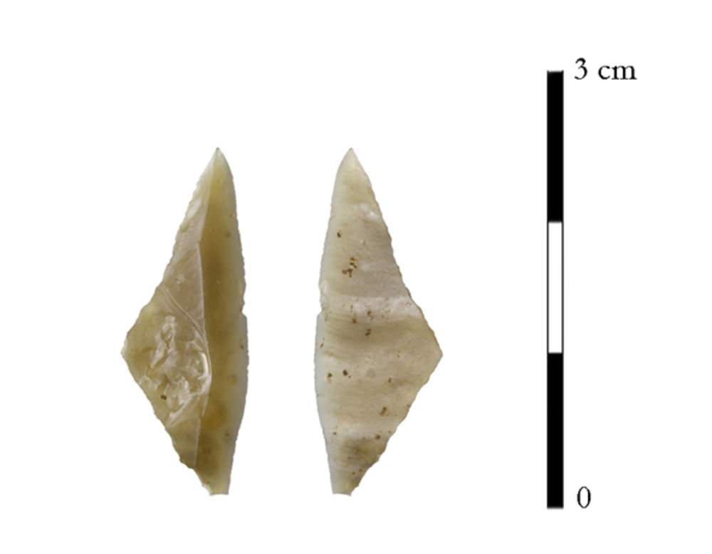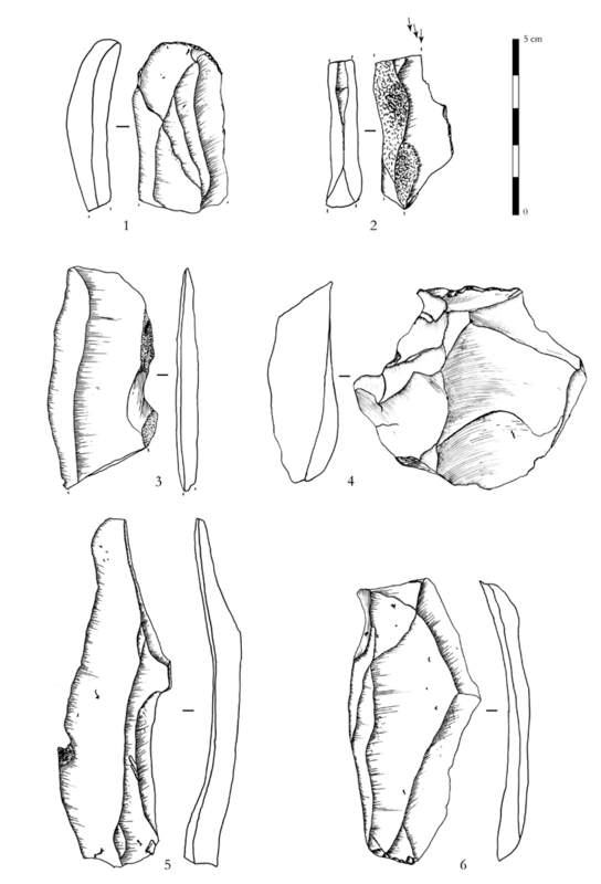 Le mobilier étudié se compose essentiellement de silex taillés auxquels s’ajoutent quelques éléments en grès-quartzite. Les outils, indifféremment réalisés à partir d’éclats ou de lames de ces deux matériaux, demeurent rares mais sont assez variés (grattoirs, burins, denticulés). Ils ont très vraisemblablement servi au traitement du gibier chassé dans les environs (découpe, raclage de la peau…).