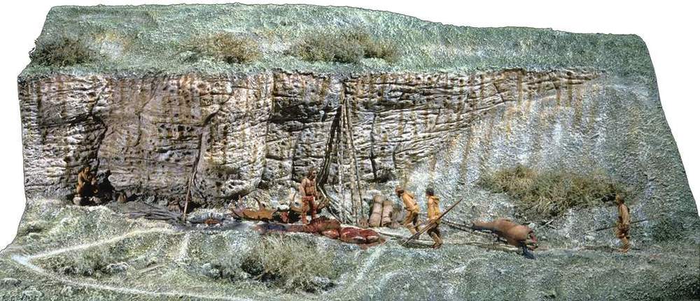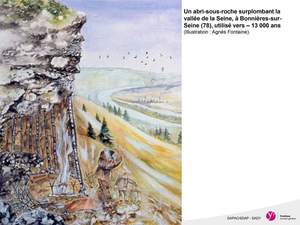 Cette maquette est une hypothèse de restitution d'un abri-sous-roche fouillé à Bonnières-sur-Seine (78). Les vestiges révèlent un aspect de la culture magdalénienne : la halte d’un groupe de chasseurs de la vallée de la Seine, venus récolter du silex local et chasser des chevaux et des mégacéros.
