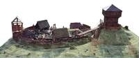 Cette maquette représente un site imaginaire évoquant les premières seigneuries du Moyen Âge aux Xe-XIe siècles.