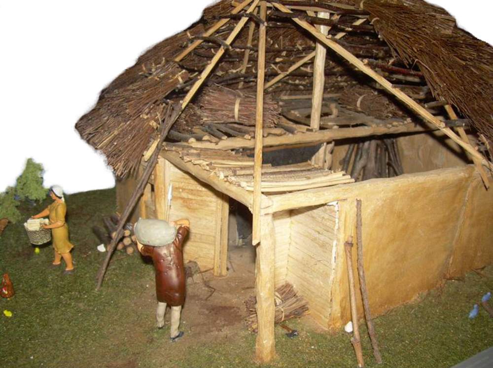 Cette petite maquette présente une habitation paysanne du début du Moyen Âge et illustre l'architecture en terre et bois.